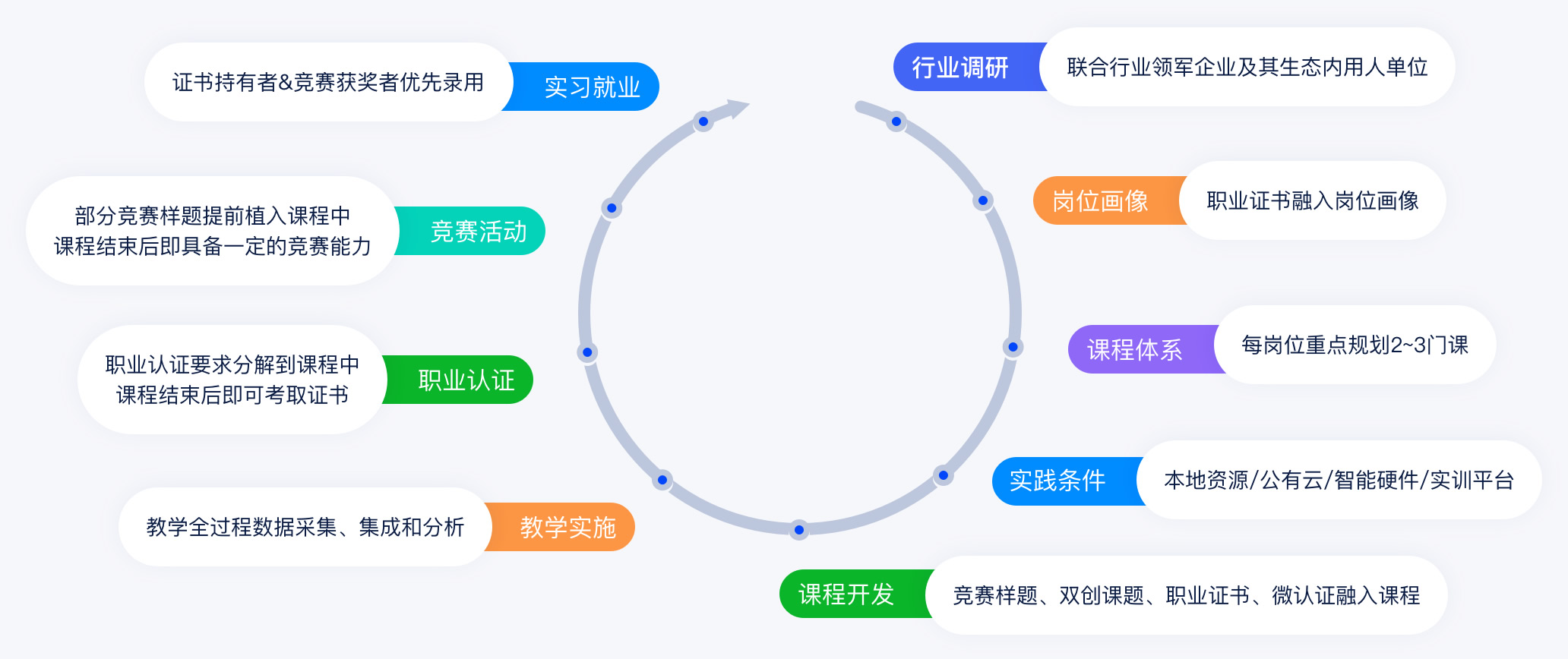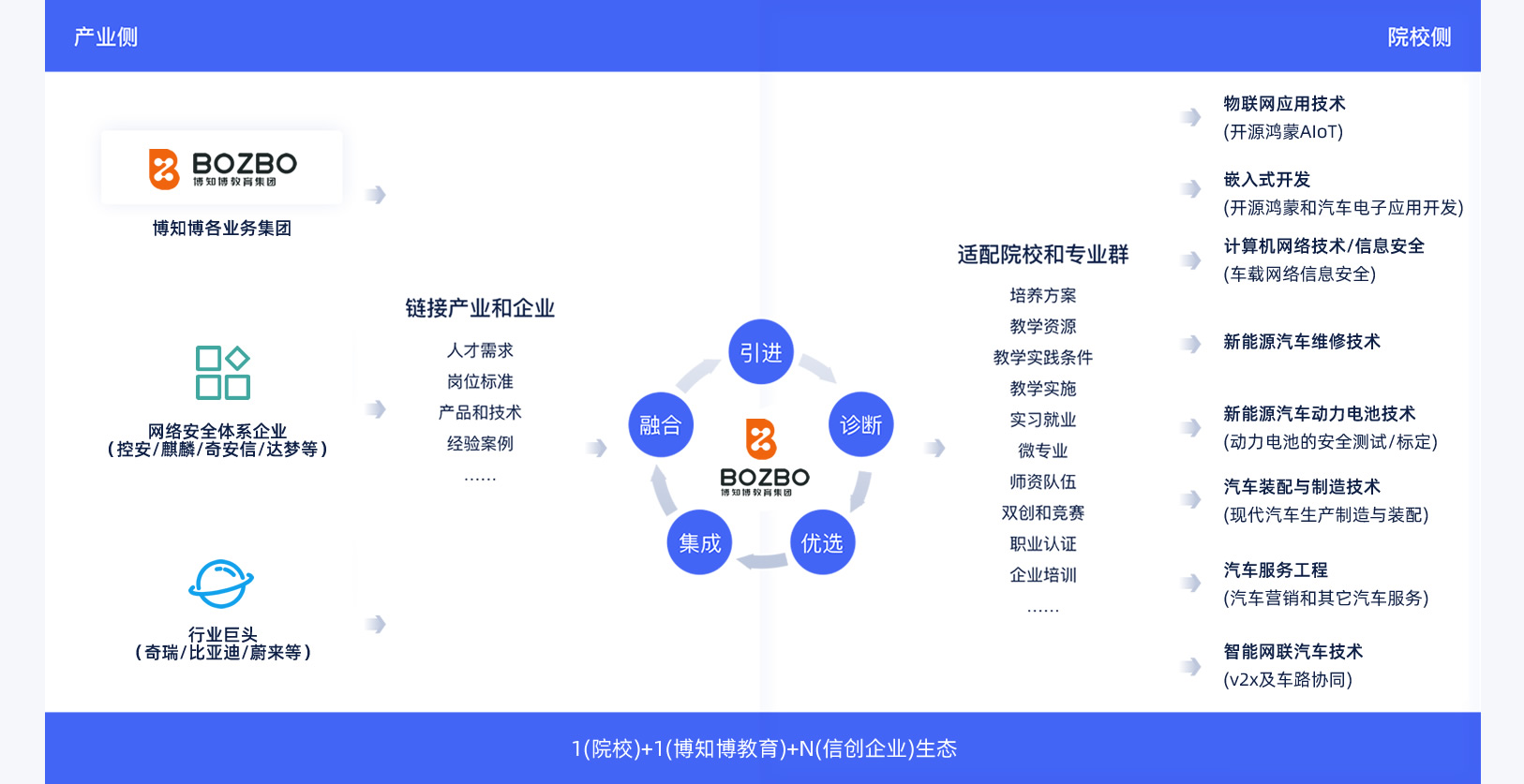 岗课赛证融通培养模式 博知博教育作为主要的设计者和参与者,协助院校完成端(岗位入口)到端(专业出口)人才培养